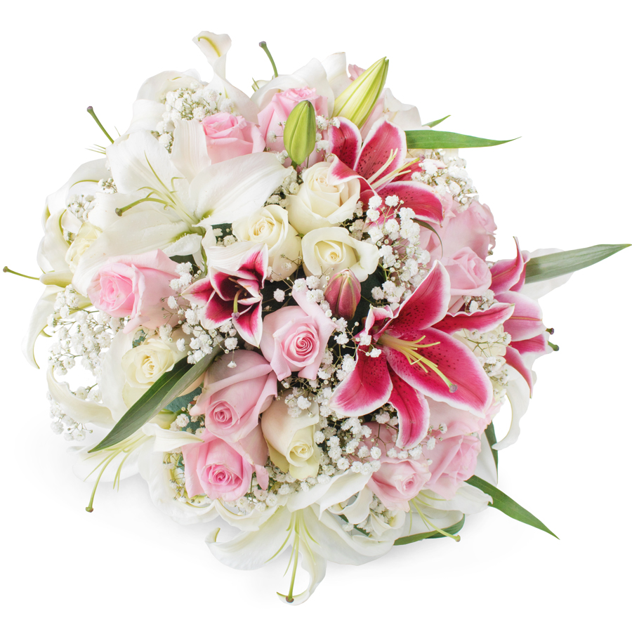 Introduce a pop of sophisticated elegance with our Charming Radiant Bouquet. Combining the delicate beauty of white and pink roses with the graceful allure of white lilium and purple oriental lilium, this arrangement is perfectly balanced with the subtle accents of gypsophila. Each flower is meticulously chosen to ensure a memorable, overjoying impact.